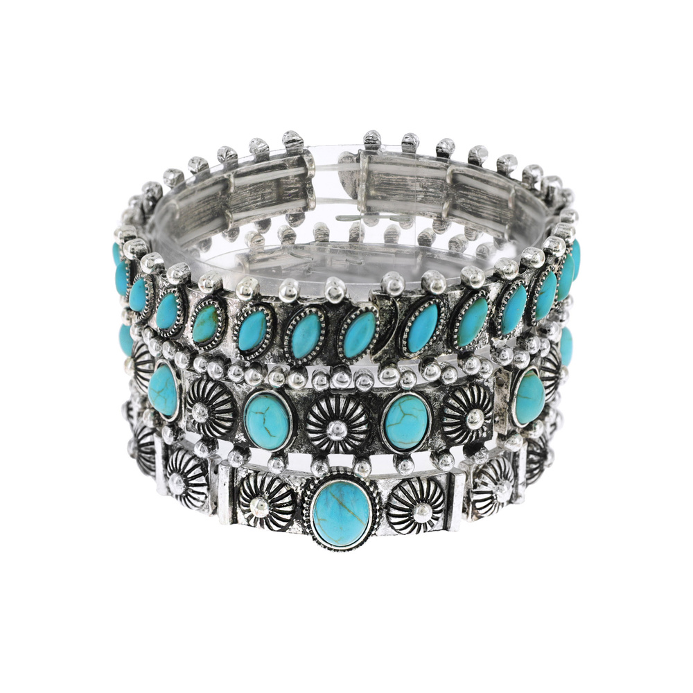 3-piece Western Turquoise Semi Stone Stretch Bracelet Set