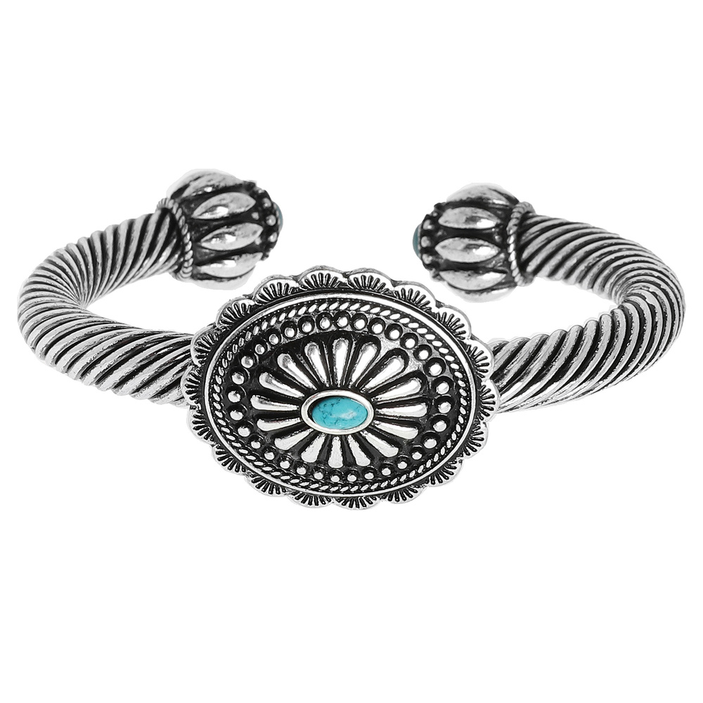 Western Turquoise Semi Stone Scalloped Concho Cuff Bracelet