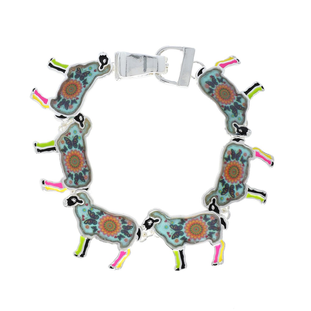 Western Multicolor Enamel Coated Sheep Link Bracelet With Magnetic Closure In Silver Tone Metal