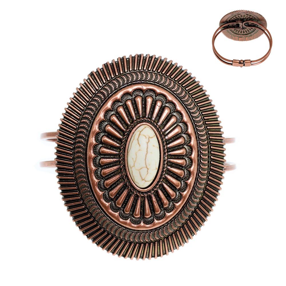 WESTERN TURQUOISE SEMI STONE OVAL SCALLOPED CONCHO CUFF BRACELET