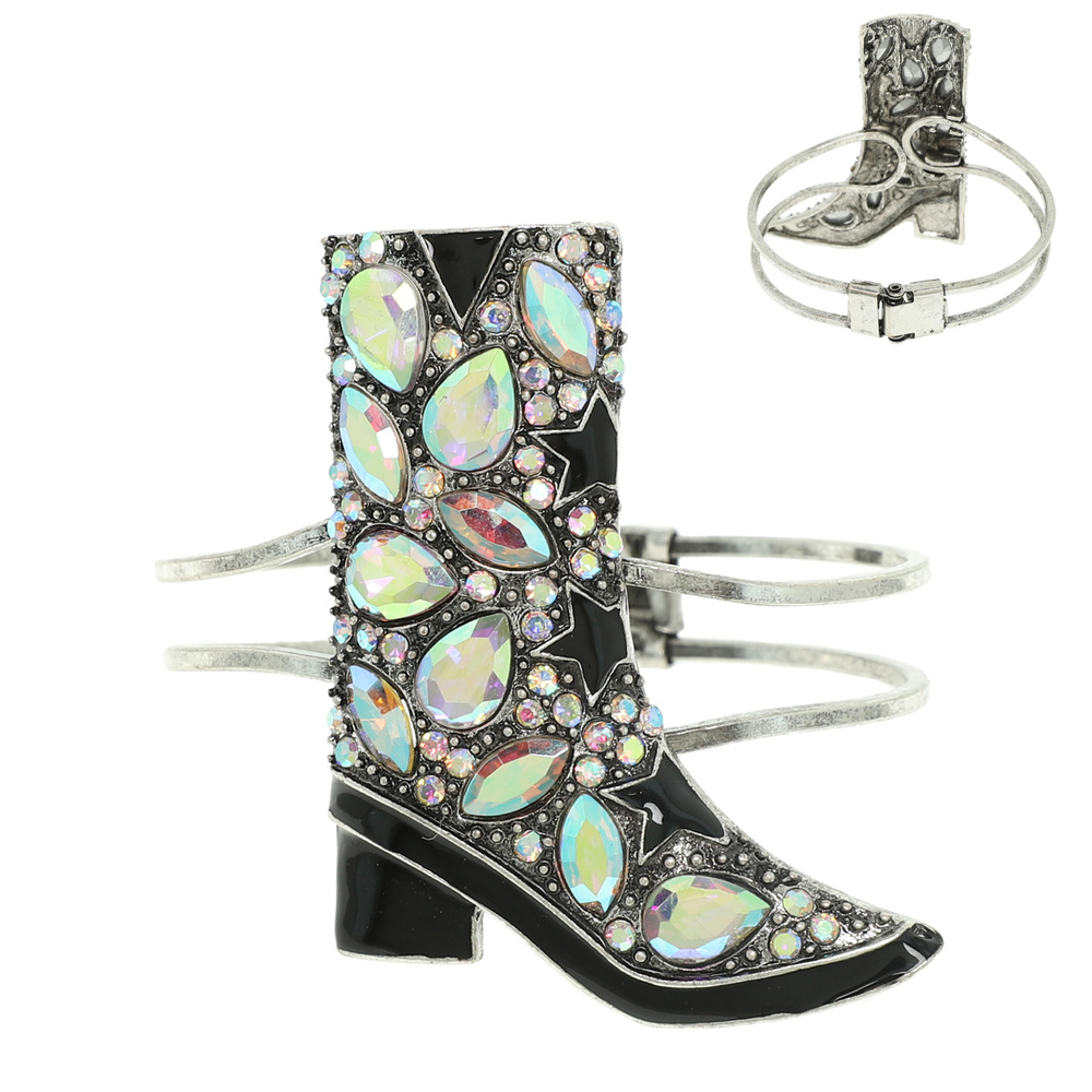 WESTERN COWBOY BOOTS CRYSTAL HINGE BRACELET