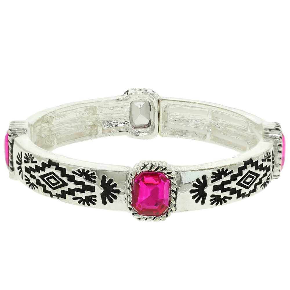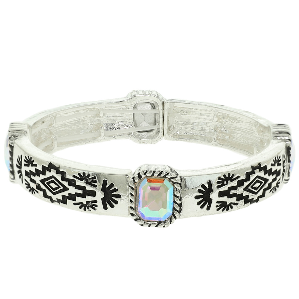 WESTERN AZTEC CRYSTAL EMBELLISHED PICTOGRAPH STRETCH BRACELET