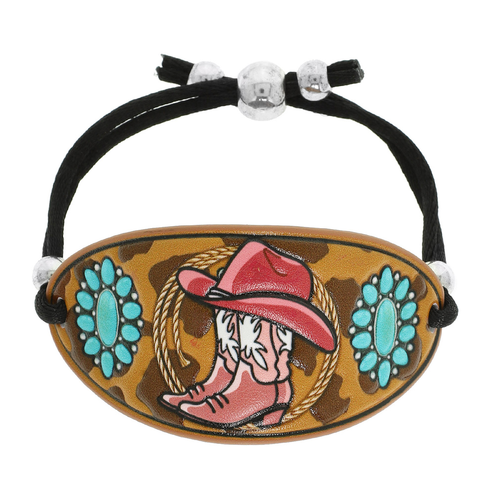 WESTERN COWBOY BOOTS TOOLED LEATHER SLIDER BRACELET