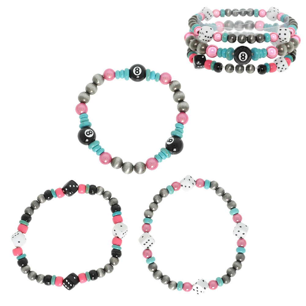 3 PIECE WESTERN 8 BALL THEME TURQUOISE STACKABLE STRETCH BRACELET SET