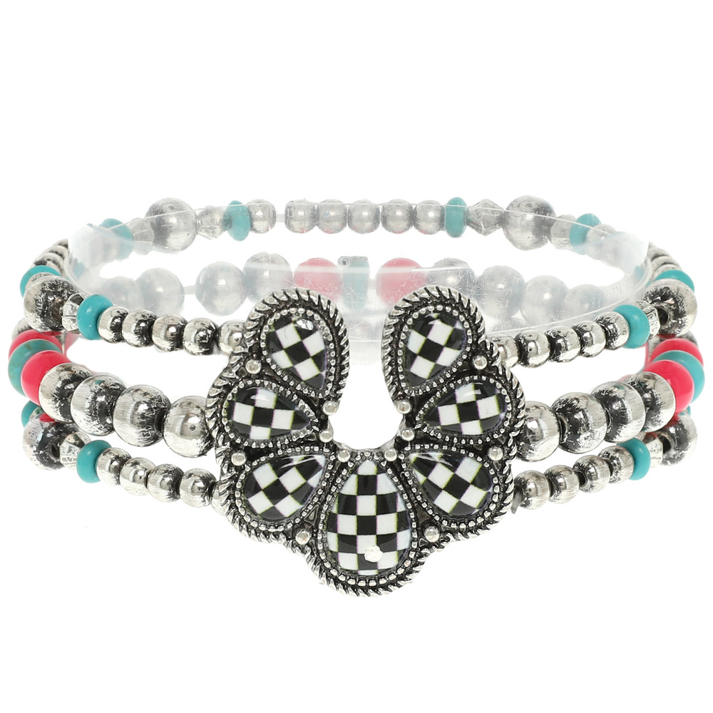 WESTERN MULTI-STRAND SQUASH BLOSSOM TURQUOISE BEADED STRETCH BRACELET