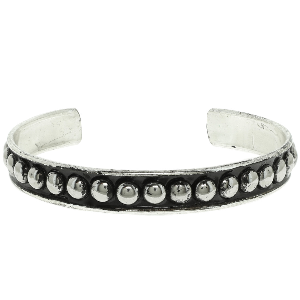 WESTERN BUBBLE BEADED CUFF BRACELET IN OXIDIZED SILVER-TONE METAL