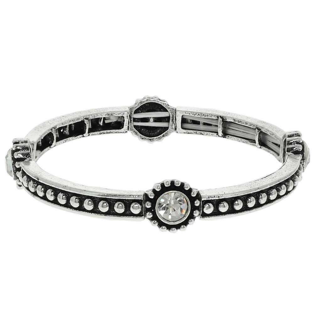 CRYSTAL EMBELLISHED BUBBLE BEADED STRETCH BRACELET IN OXIDIZED SILVER-TONE METAL
