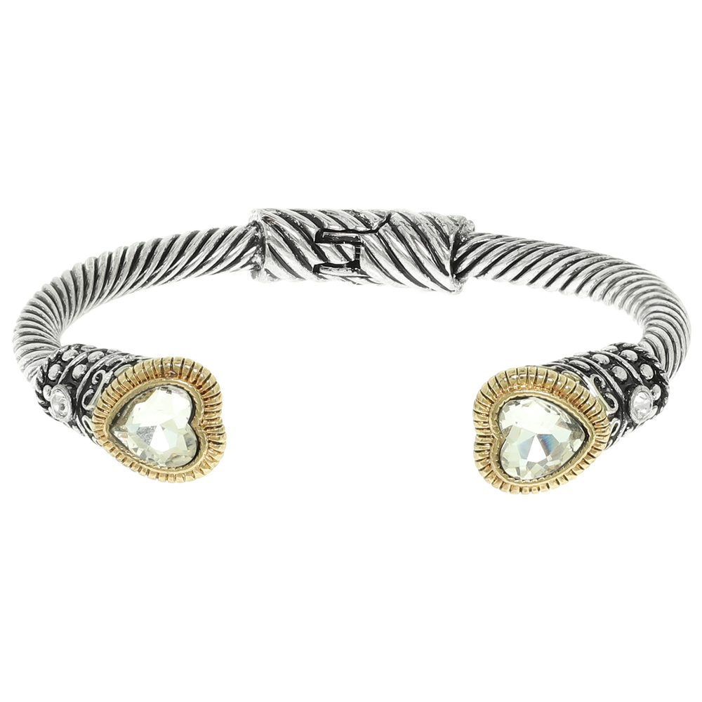 WESTERN CRYSTAL EMBELLISHED HEART CUFF BRACELET WITH FILGREE ACCENTS