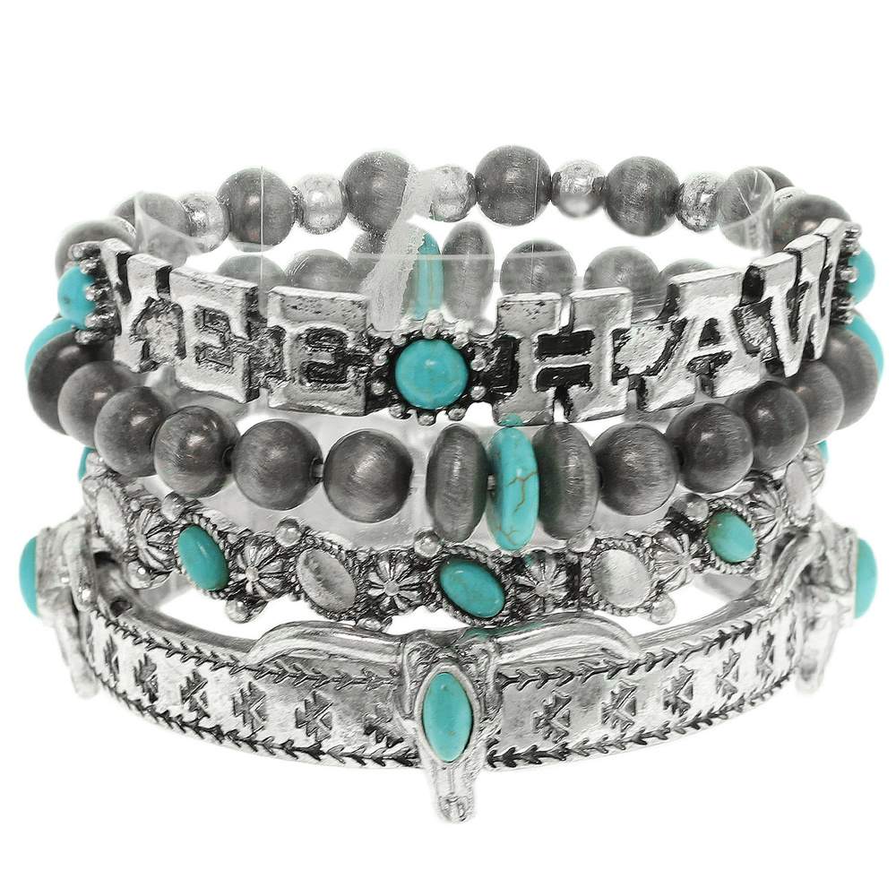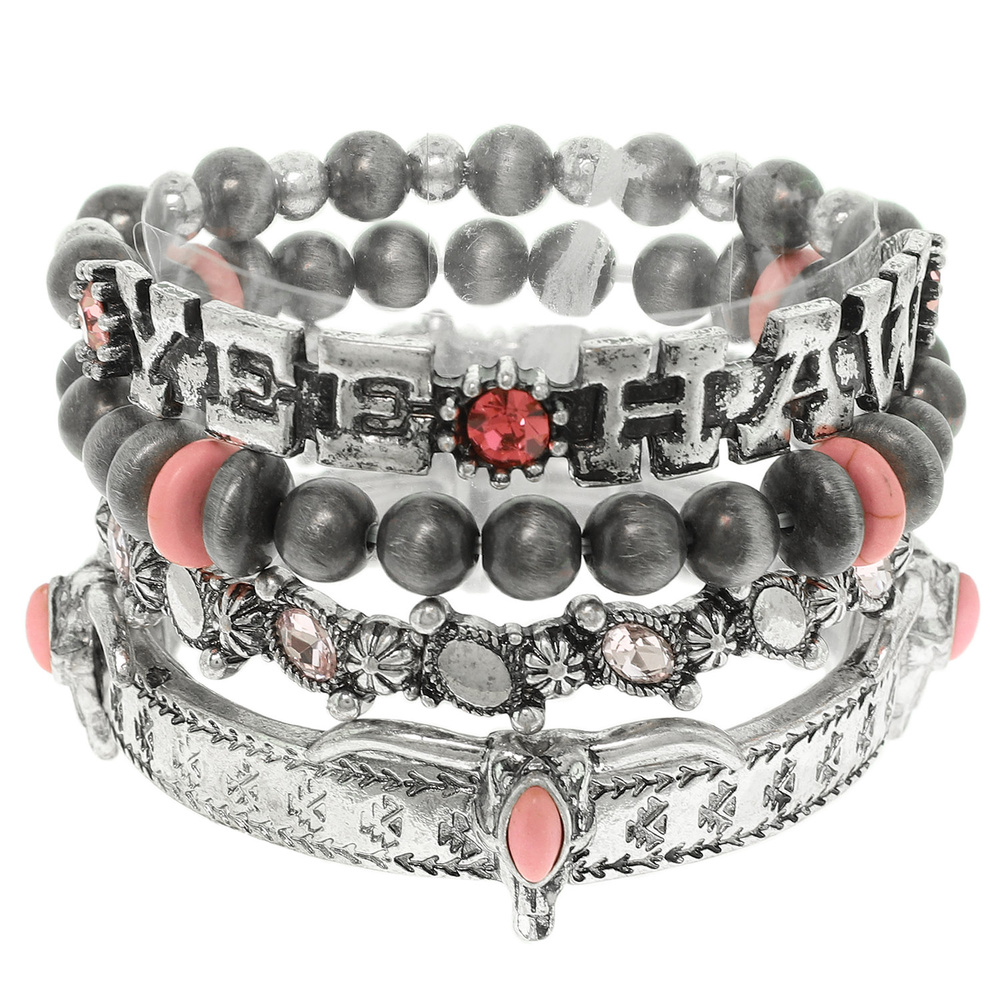 WESTERN YEE HAW STRETCH BRACELET SET WITH BEADED BANDS AND CRYSTAL ACCENTS