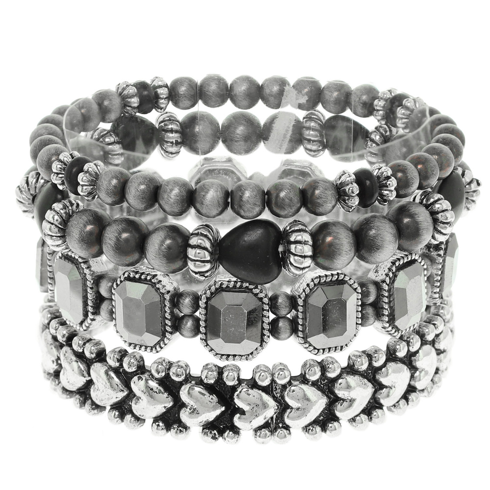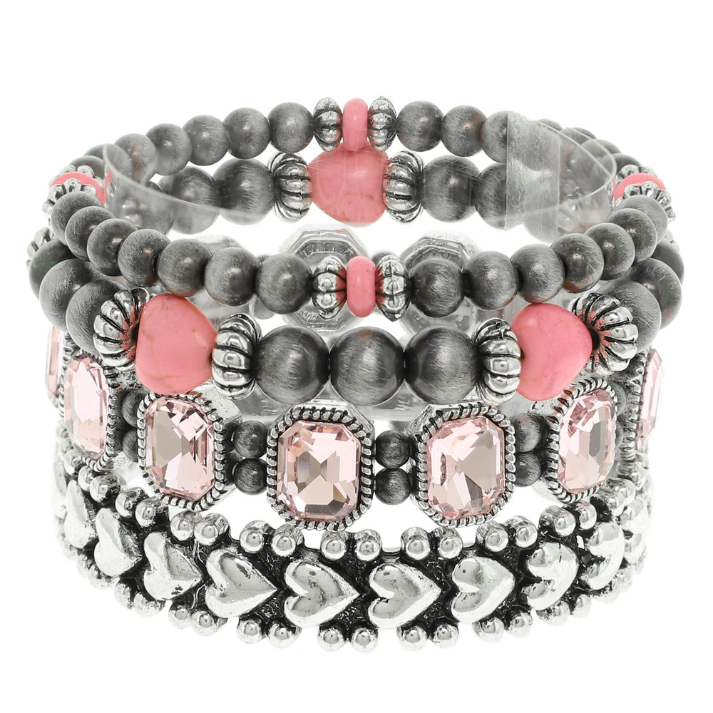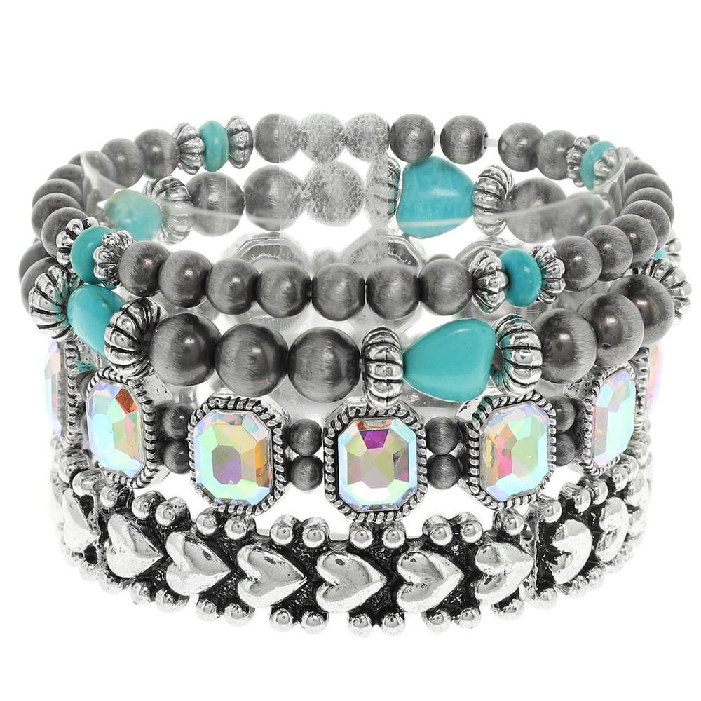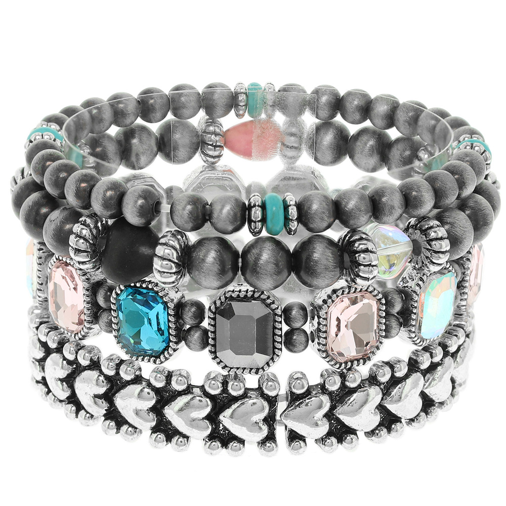 WESTERN HEART BEADED BRACELET SET WITH CRYSTAL ACCENTS AVAILABLE IN MULTIPLE COLORS