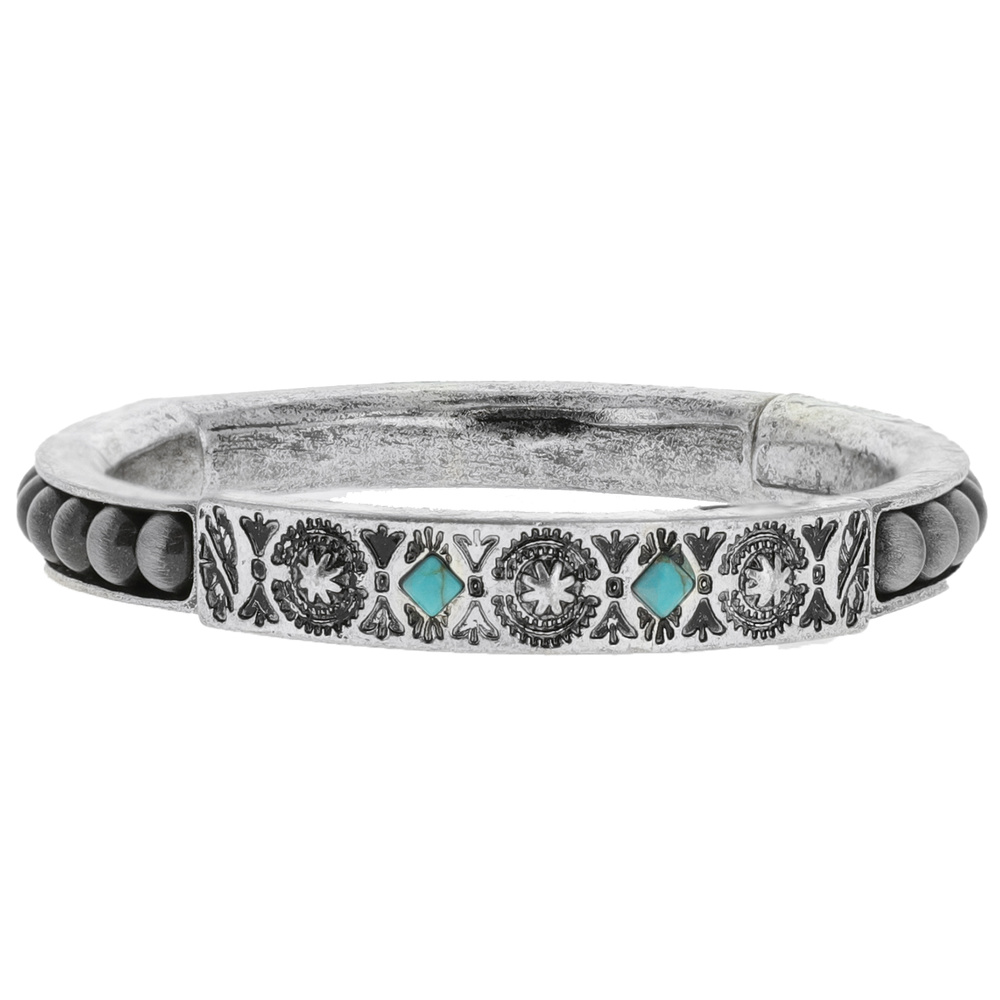 Western Sun Design Navajo Pearl Beaded Metal Bangle Bracelet