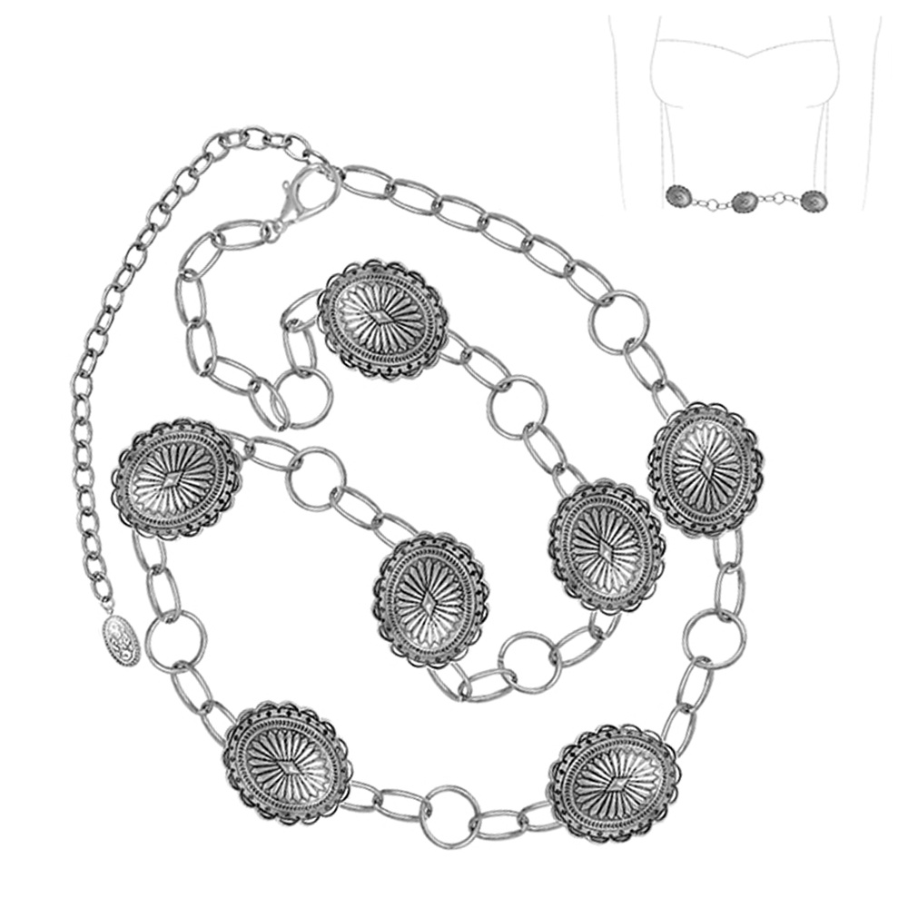 OVAL CONCHO CHAIN LINK BELT WESTERN BELLY BODY CHAIN