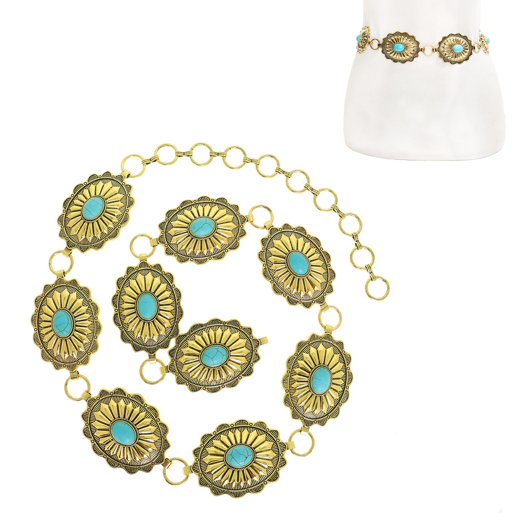 Westernt Turquoise Flower Concho Chain Hip Belt