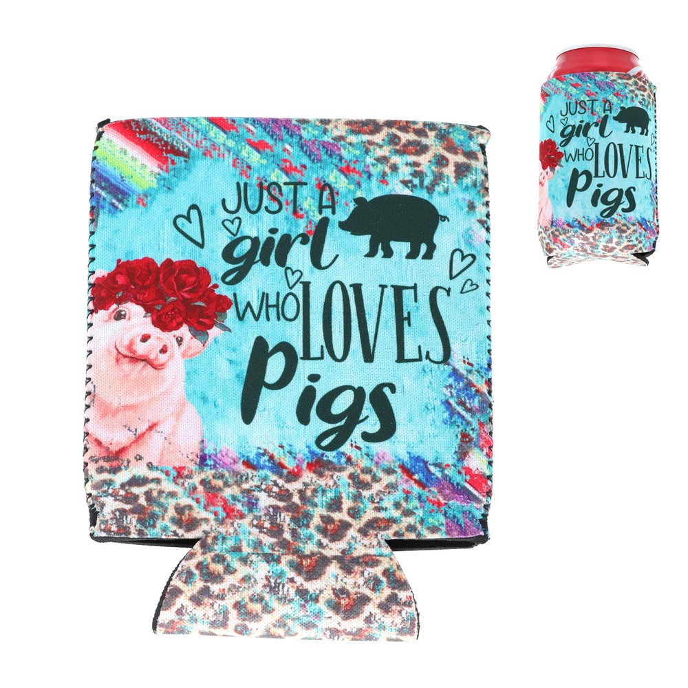 "JUST A GIRL WHO LOVES PIGS" COUNTRY LIFESTYLE WESTERN SHABBY CHIC FARM ANIMALS INSULATED NEOPRENE CAN HOLDER SLEEVE