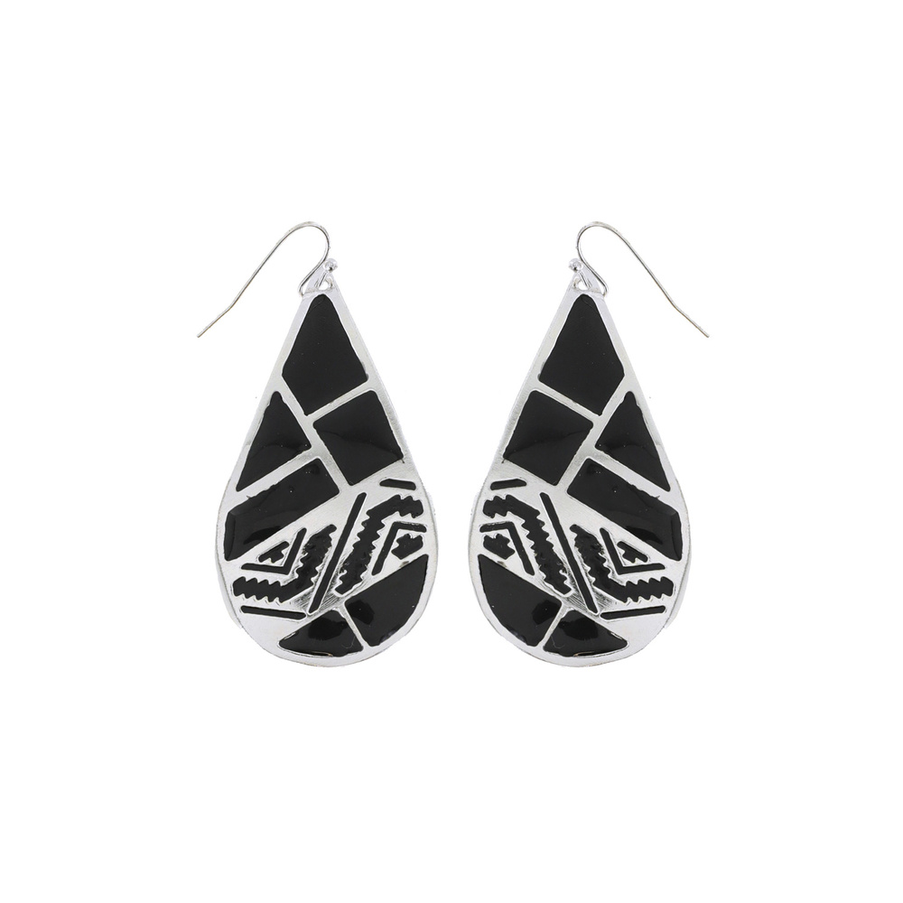 Southwestern Teardrop Enamel Coated Geometric Pattern Dangle And Drop Hook Earrings