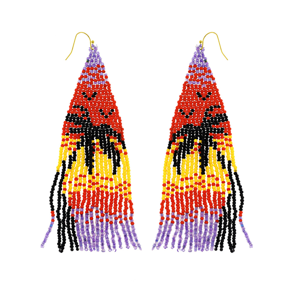 Native American Tropical Palm Tree Multicolor Beaded Long Drop Tassel Hook Earrings