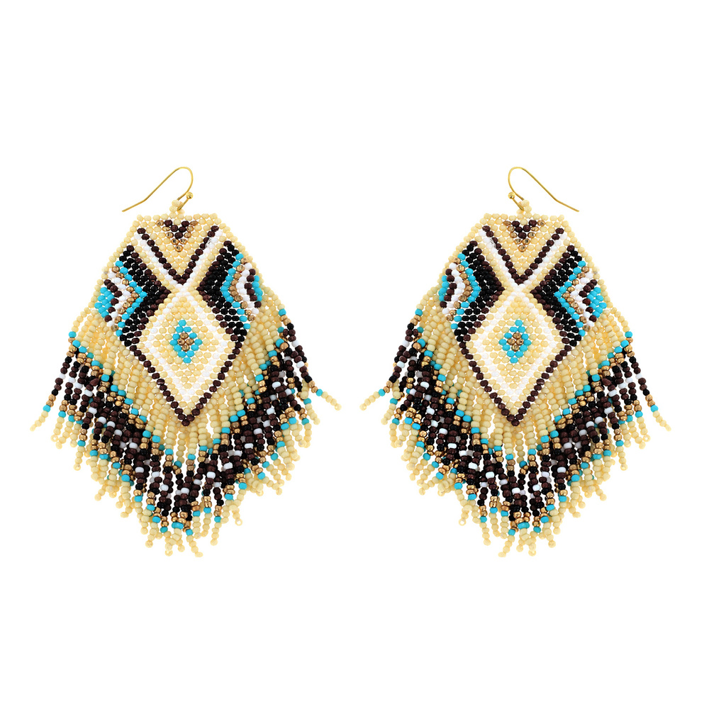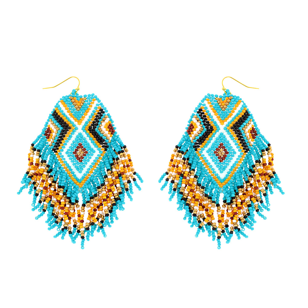 Native American Multicolor Beaded Long Drop Tassel Hook Earrings