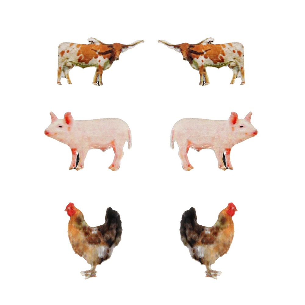 WESTERN 3-PAIR FARM ANIMAL ASSORTED EARRINGS SET