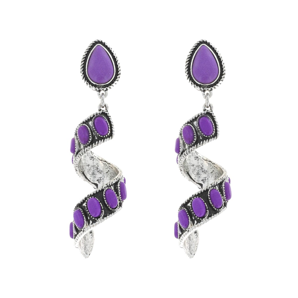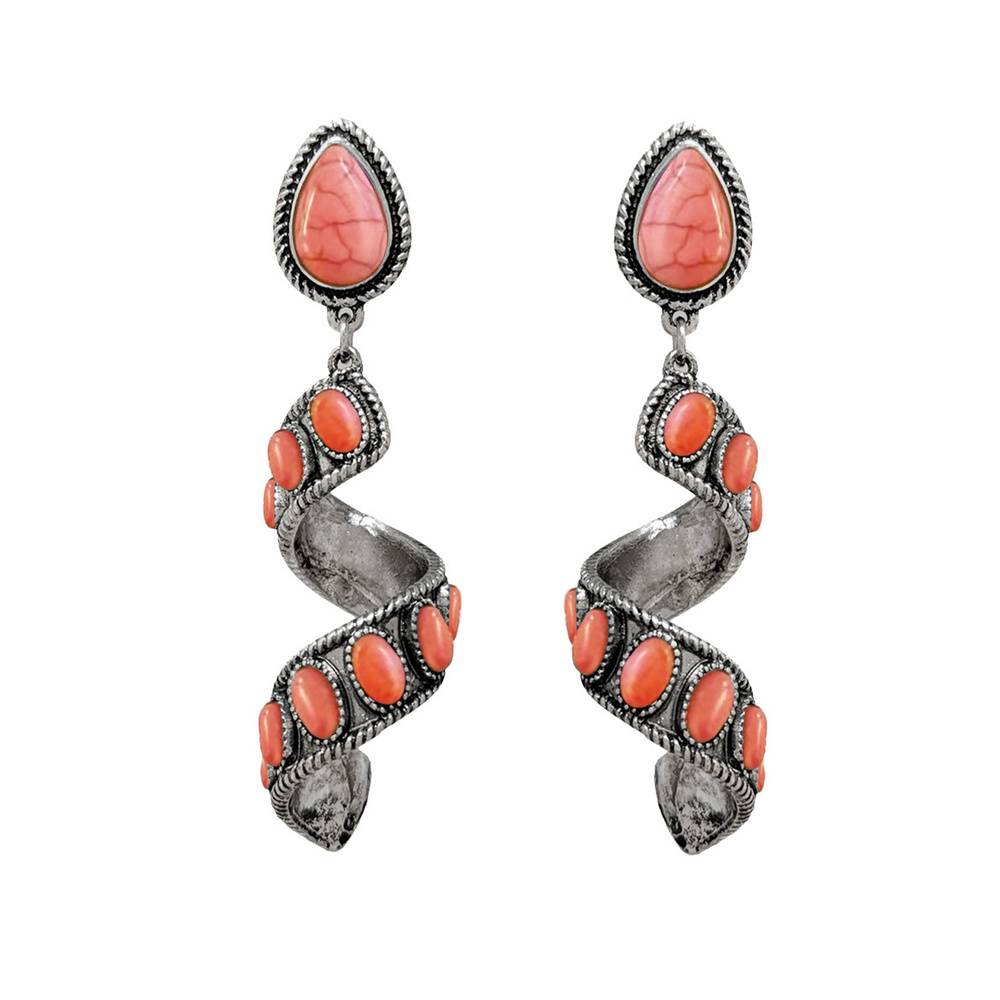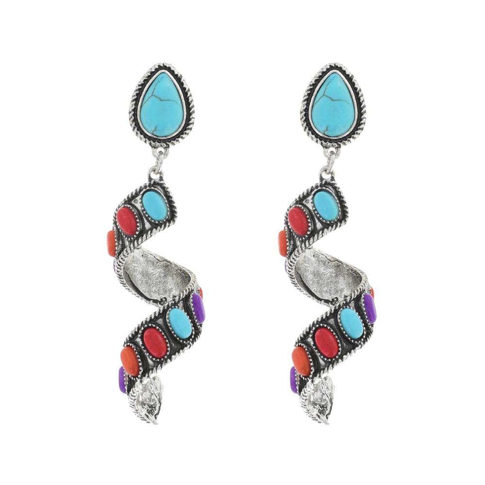 2-tier Western Teardrop Post Turquoise Semi Stone Spiral Dangle And Drop Earrings In Oxidized Silver Tone Metal