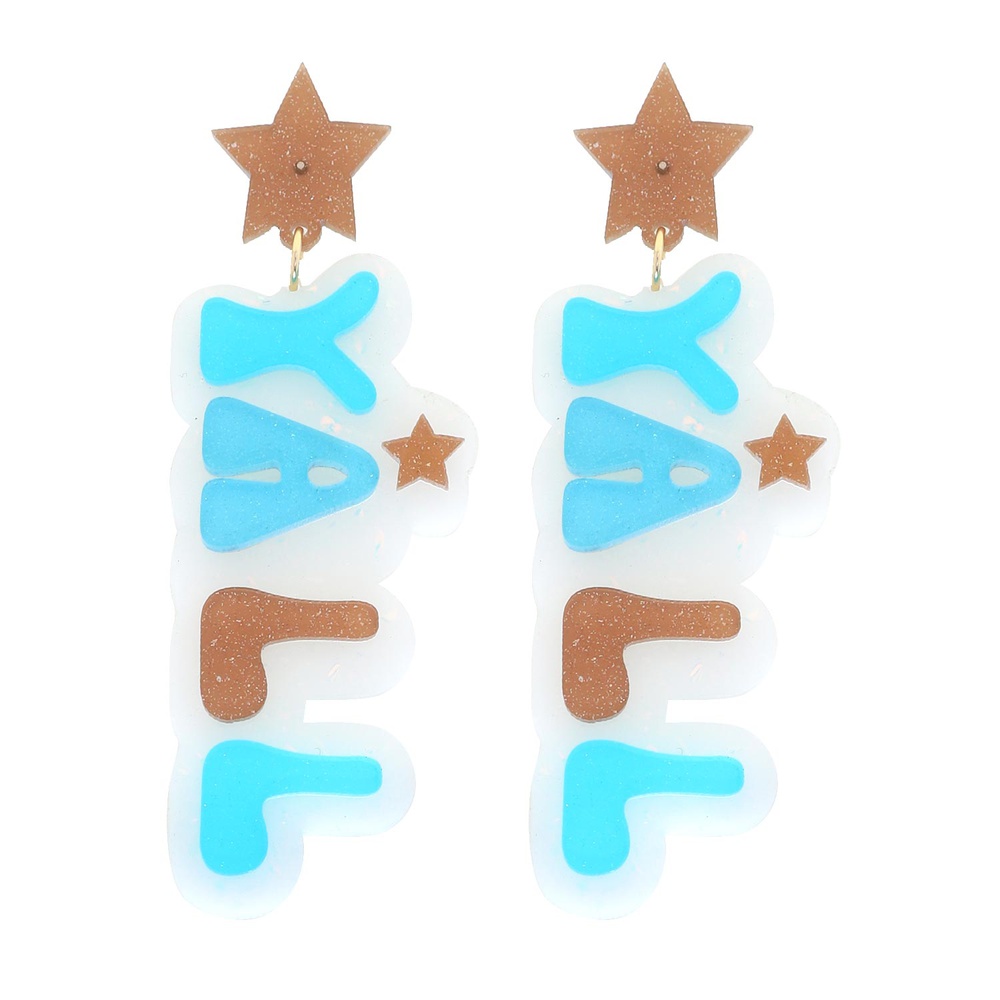 2-TIER STAR POST "YALL" ACETATE GLITTER LONG DROP EARRINGS