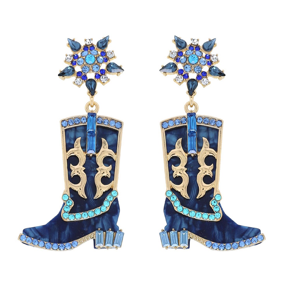 2-TIER FLORAL POST WESTERN CRYSTAL RHINESTONE ACETATE COWBOY BOOTS DANGLE AND DROP EARRINGS