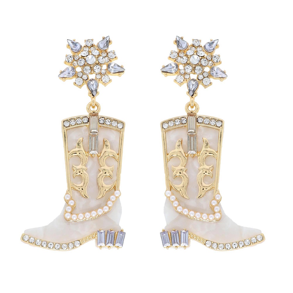 2-TIER FLORAL POST WESTERN CRYSTAL RHINESTONE ACETATE COWBOY BOOTS DANGLE AND DROP EARRINGS