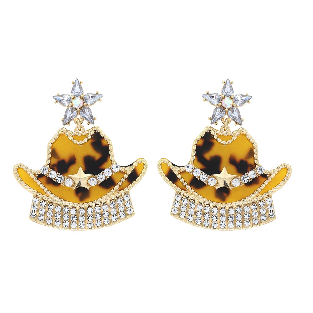 2-TIER FLORAL POST WESTERN CRYSTAL RHINESTONE ACETATE FRINGE COWBOY HAT DANGLE AND DROP EARRINGS