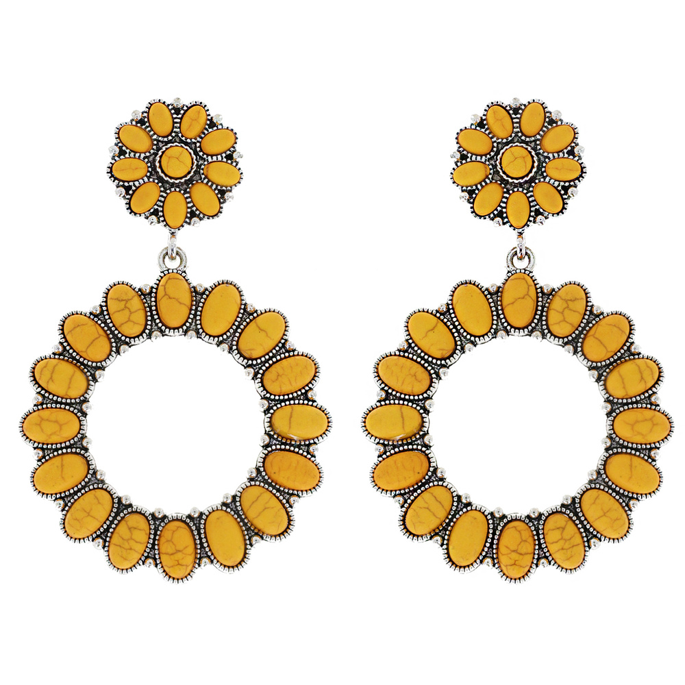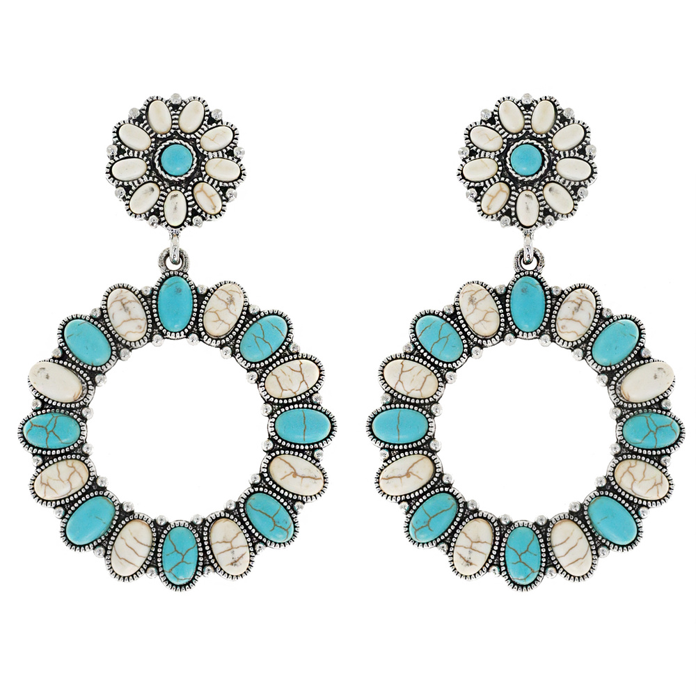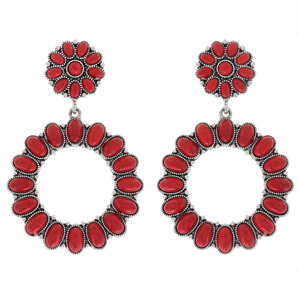 WESTERN 2-TIER OPEN CIRCLE SYNTHETIC SEMI STONE DANGLE AND DROP EARRING
