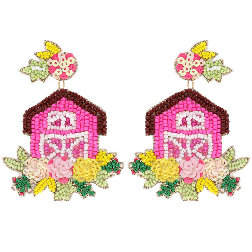 2-tier Barn Beaded Embroidery Earrings