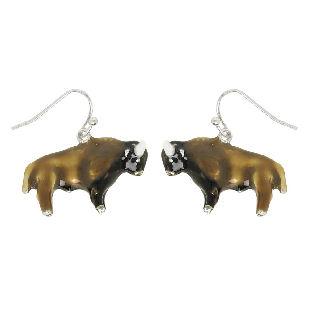 WESTERN FRONTIER BUFFALO BISON ENAMEL COATED FISH HOOK DROP EARRINGS