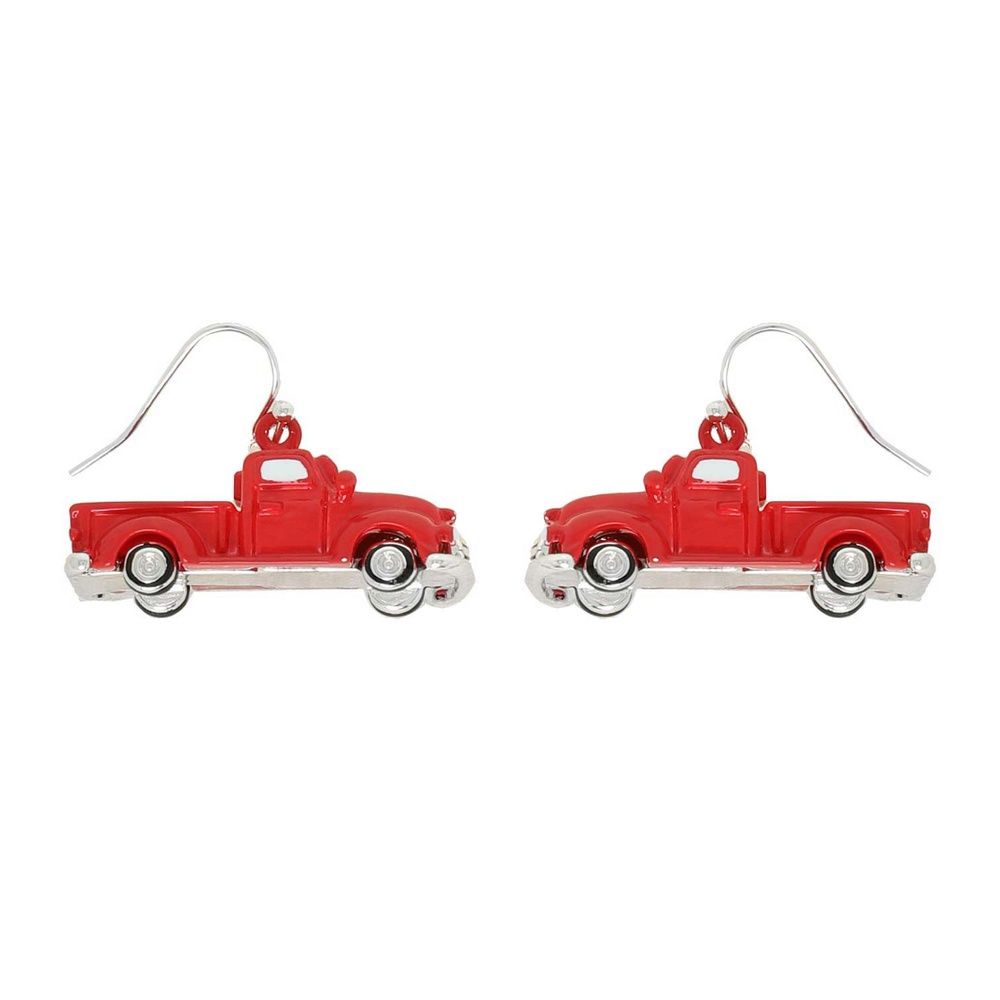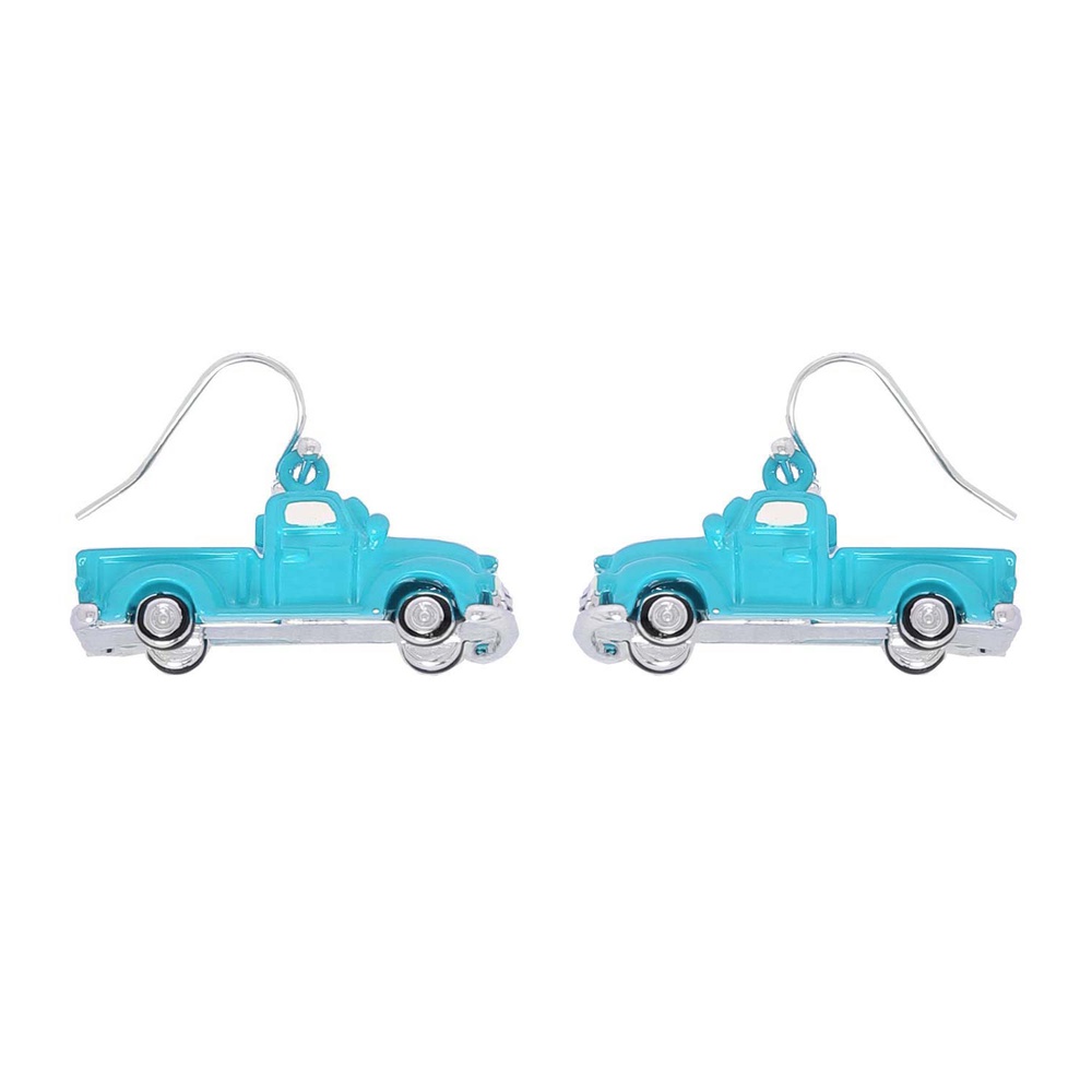 PICKUP TRUCK ADJUSTABLE ENAMEL COATED FISH HOOK DROP EARRINGS