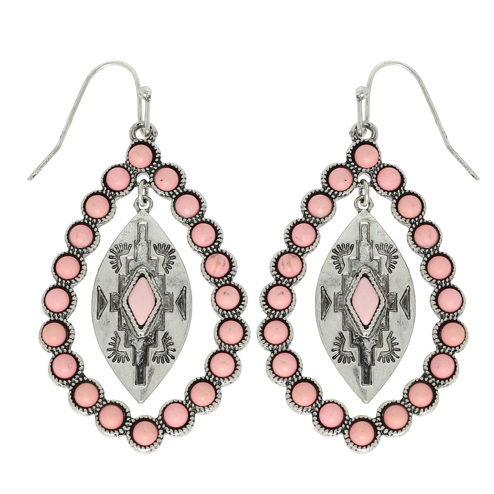 WESTERN AZTEC TEARDROP SEMI PRECIOUS STONE DROP EARRINGS