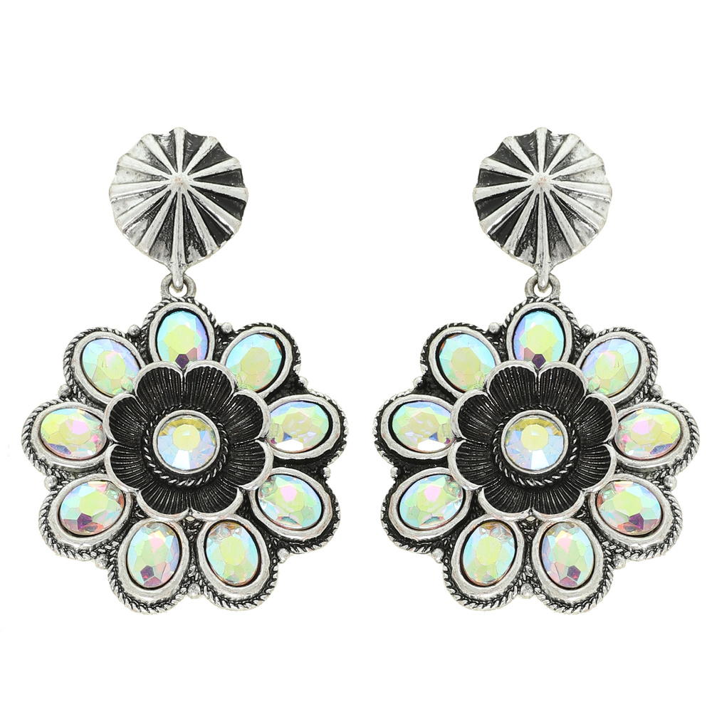 2-TIER WESTERN FLORAL AB GEMSTONE AND TURQUOISE SEMI STONE DROP EARRINGS