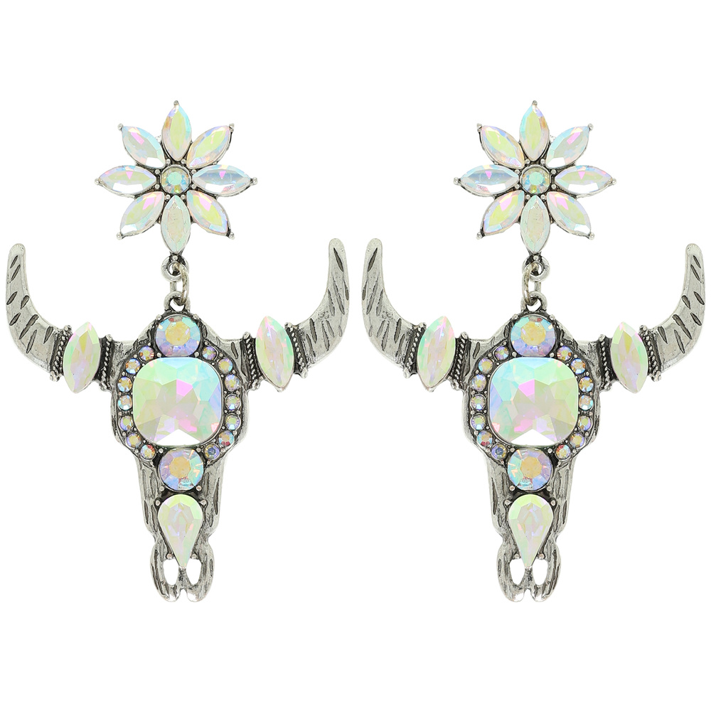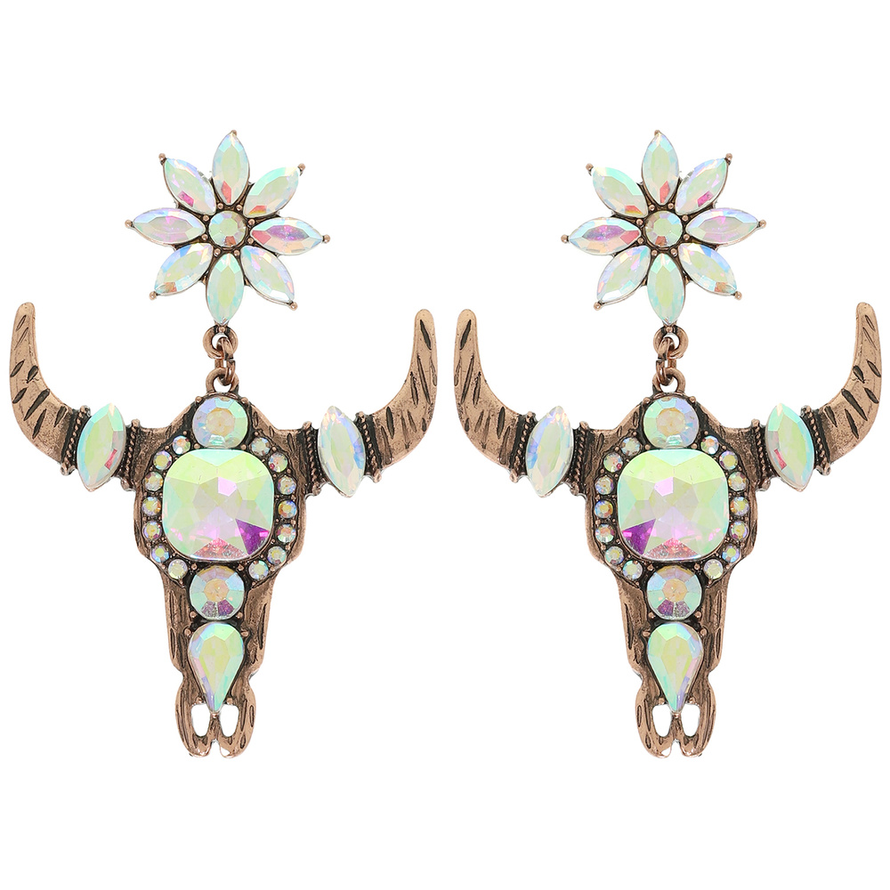 TWO-TIER WESTERN GEMSTONE RHINESTONE LONGHORN EARRINGS