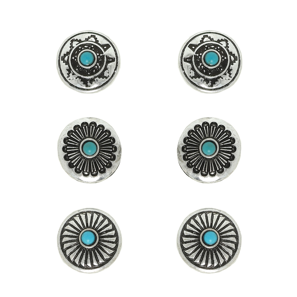 3-pair Western Turquoise Concho Earring Set