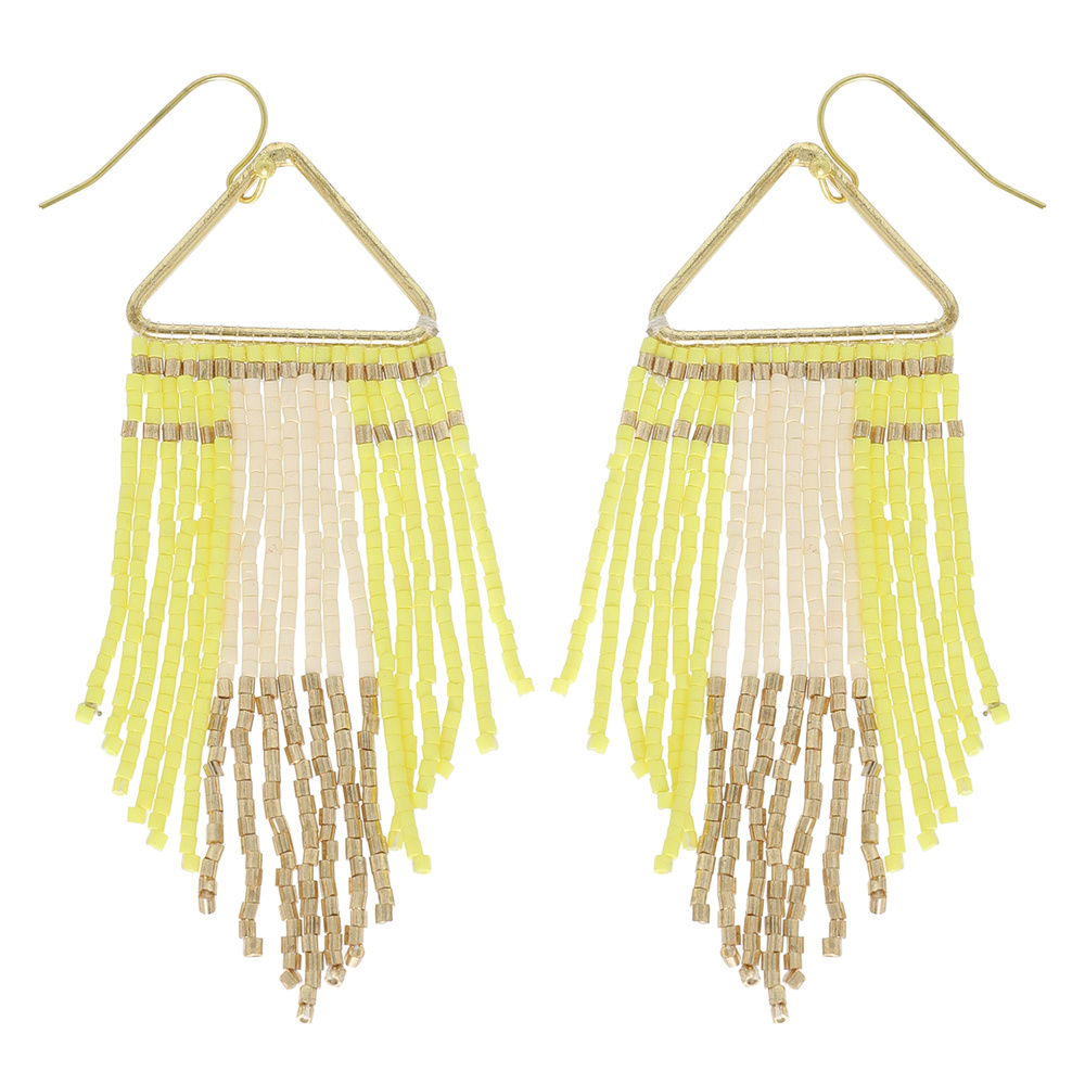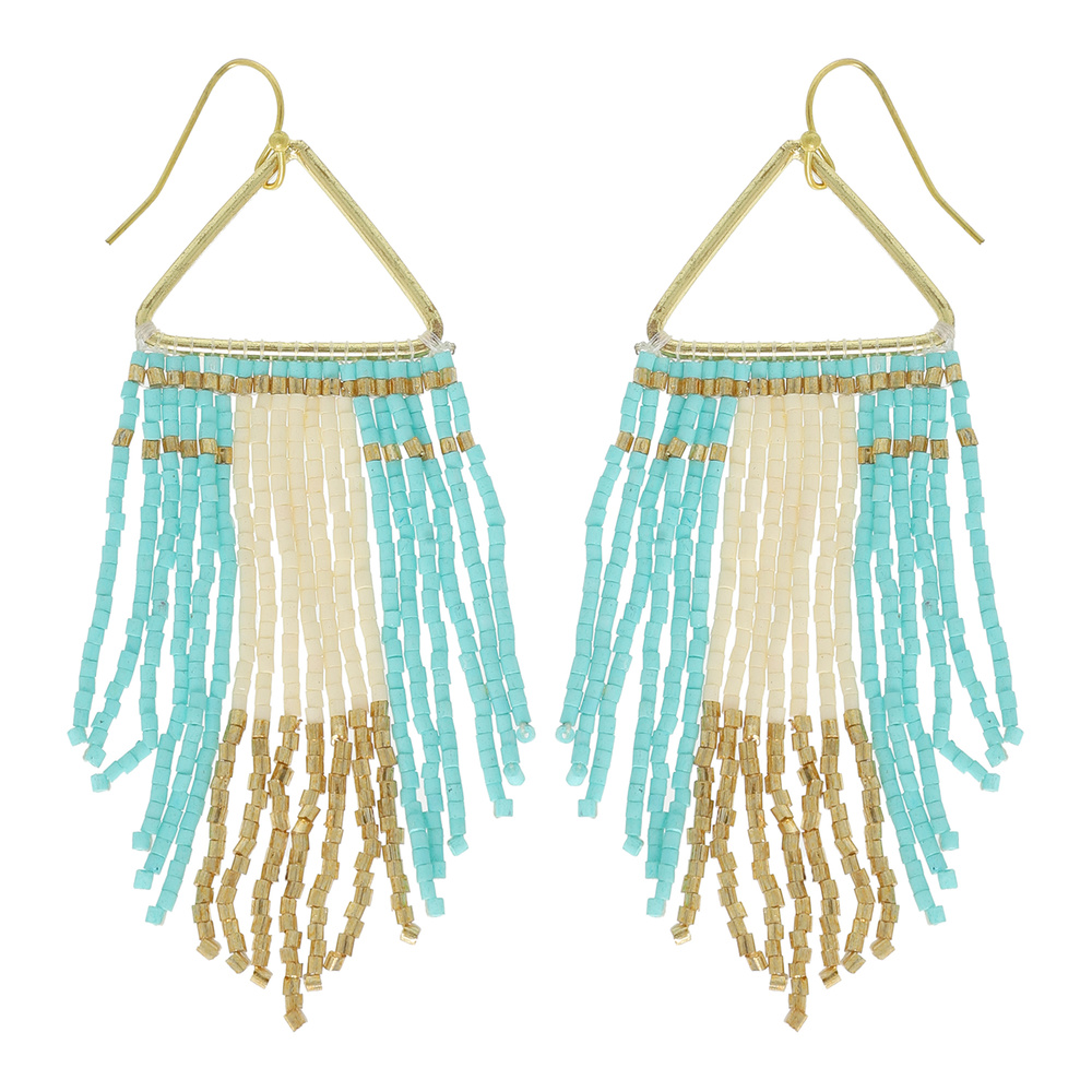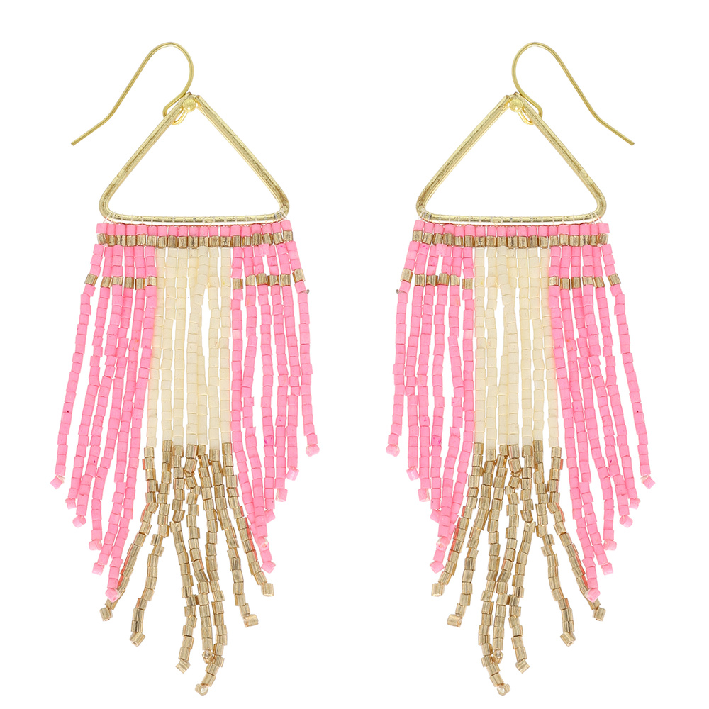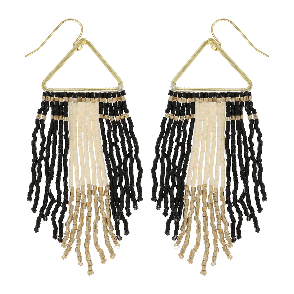 WESTERN NATIVE AMERICAN GEOMETRIC SEED BEAD FRINGE EARRINGS