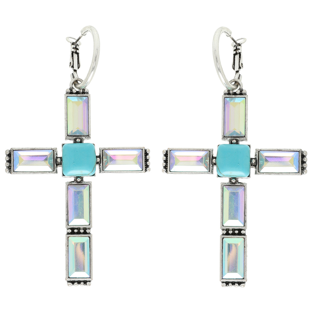 Western Gemstone Cross Hoop Earrings