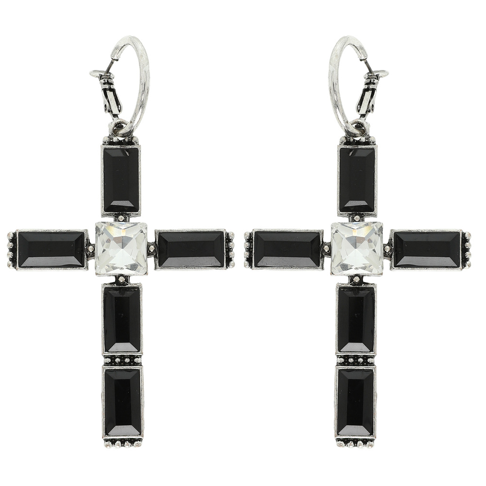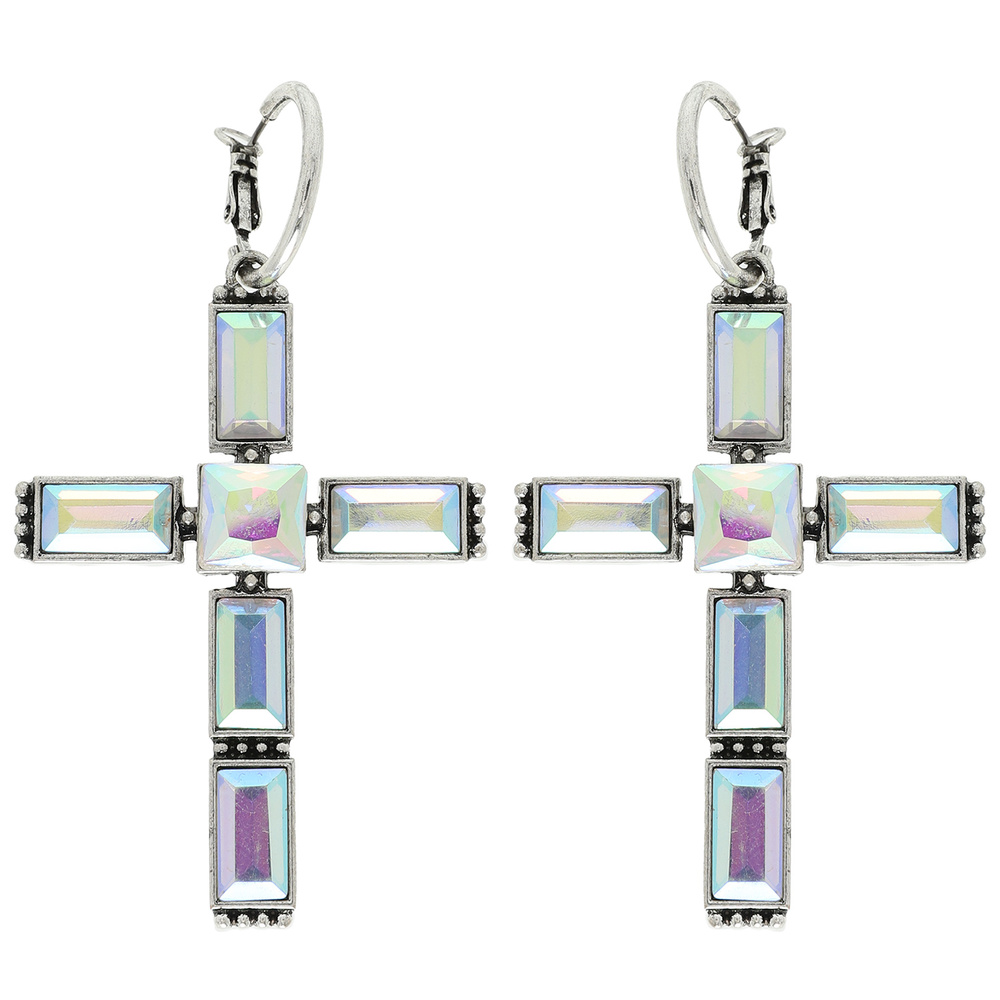 WESTERN BAGUETTE SQUARE CUT GEMSTONE CROSS HOOP EARRINGS