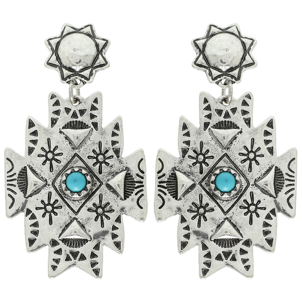 SUN CELESTIAL GEOMETRIC TURQUOISE CONCHO POST EARRINGS