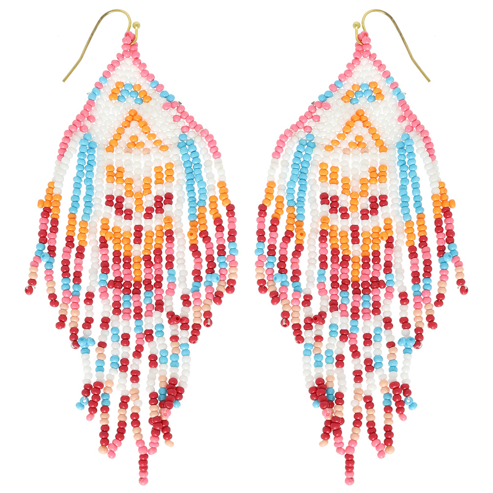 WESTERN NATIVE AMERICAN MULTI-COLOR SEED BEAD FRINGE EARRINGS