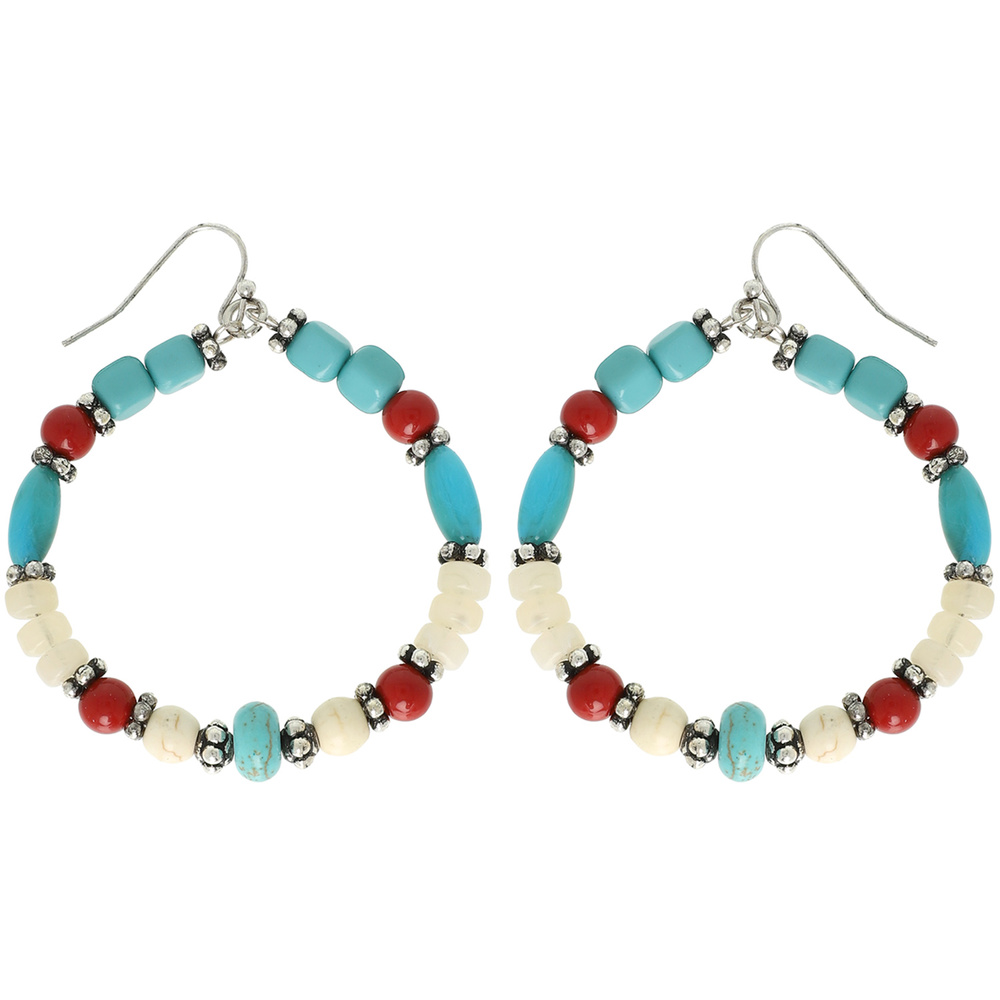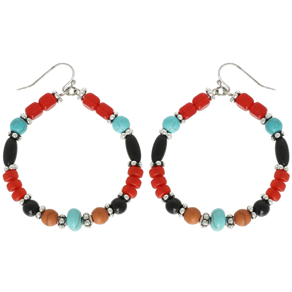 WESTERN NATIVE AMERICAN MULTI-COLOR STONE BEAD HOOP EARRINGS