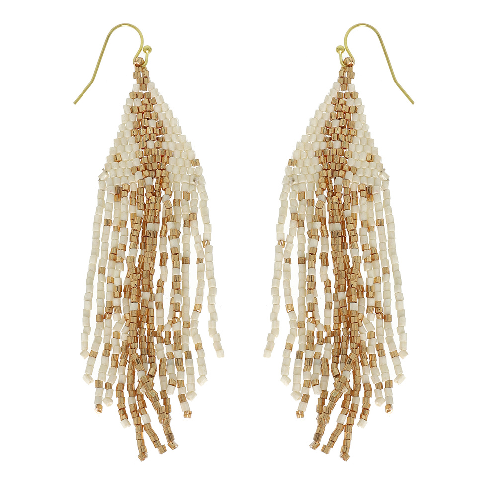 WESTERN NATIVE AMERICAN TWO-TONE SEED BEAD FRINGE EARRINGS