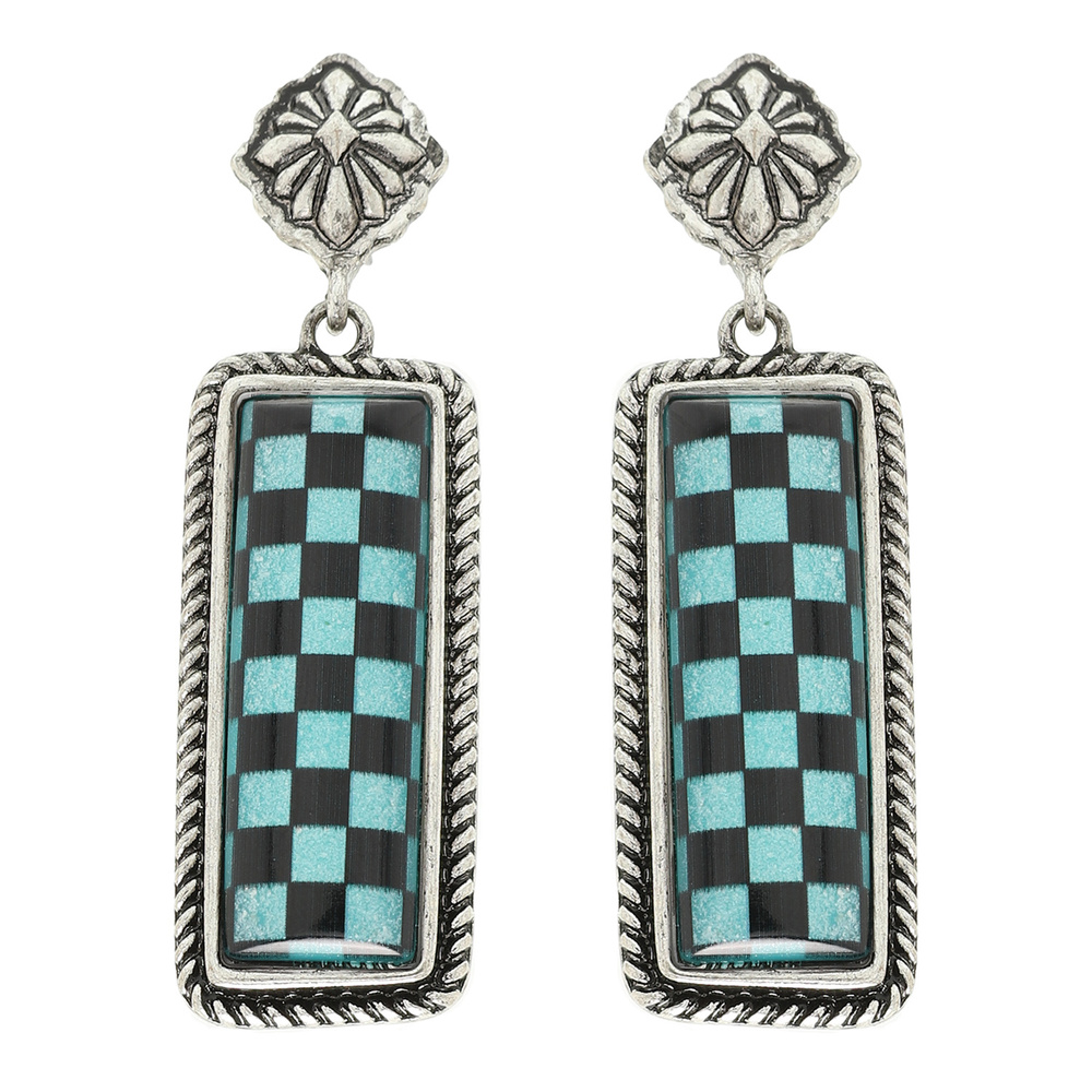 Western Epoxy Checkerboard Bar Post Earrings