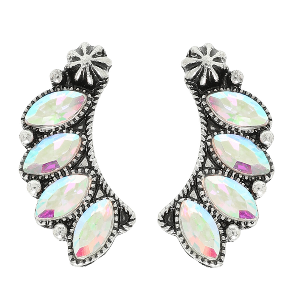WESTERN MARQUISE-CUT GEMSTONE POST EARRINGS IN OXIDIZED SILVER-TONE METAL