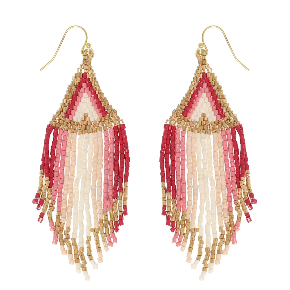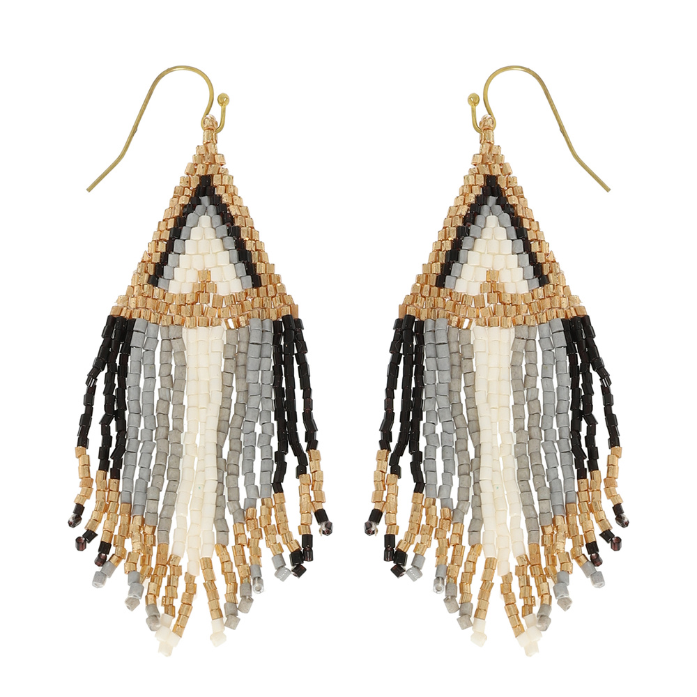 WESTERN MULTICOLOR PATTERN BEAD FRINGE DANGLE EARRINGS