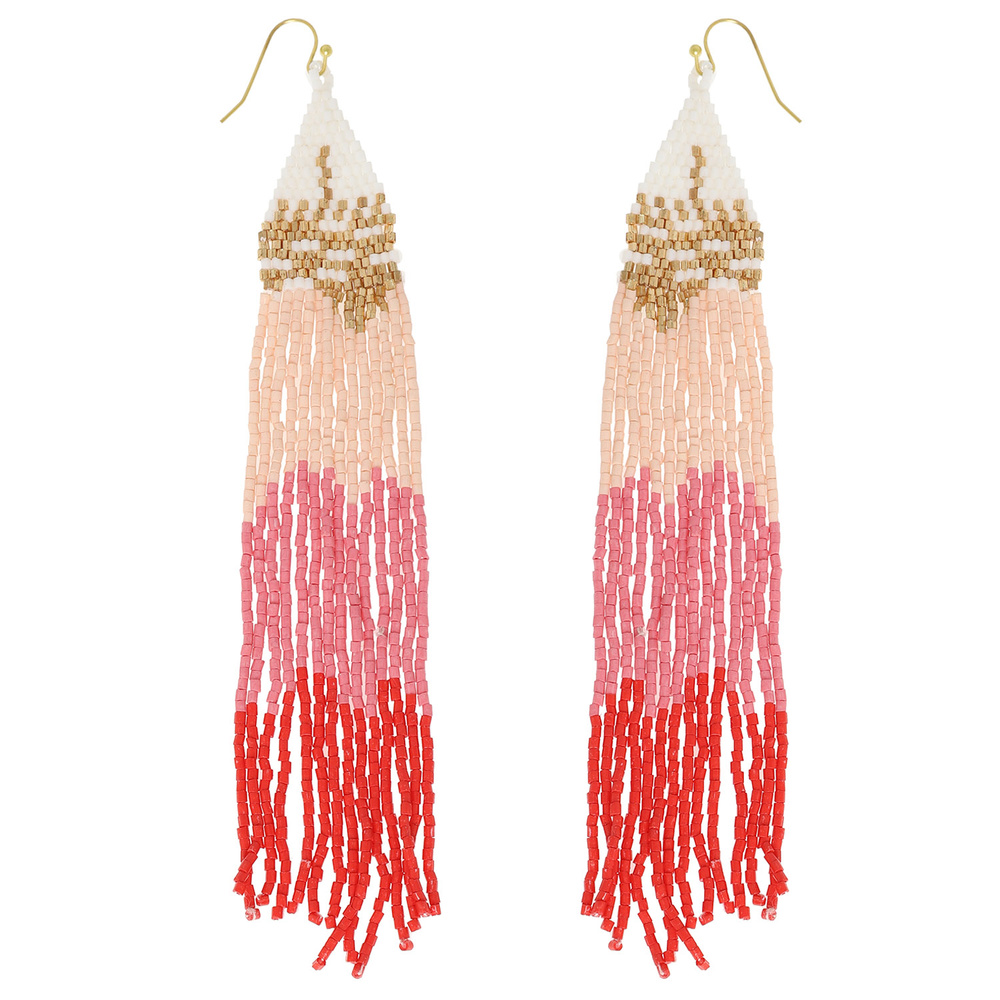 WESTERN PASTEL COLOR BLOCK SEED BEAD FRINGE DANGLE EARRINGS