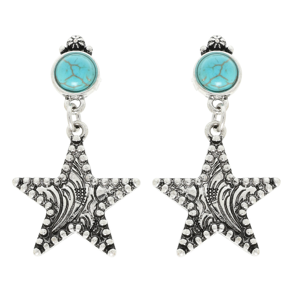 WESTERN TURQUOISE ENGRAVED STAR POST DANGLE EARRINGS