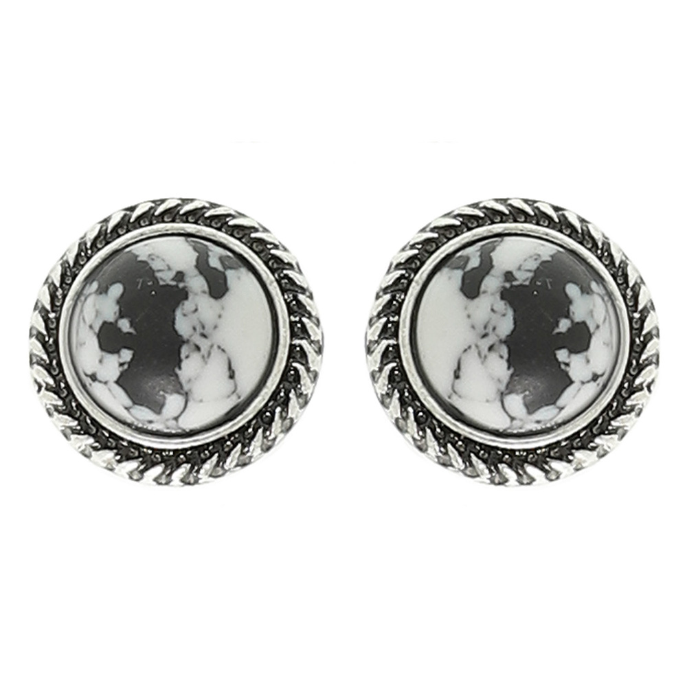 WESTERN COLORED TURQUOISE BUTTON POST EARRINGS IN OXIDIZED SILVER-TONE METAL