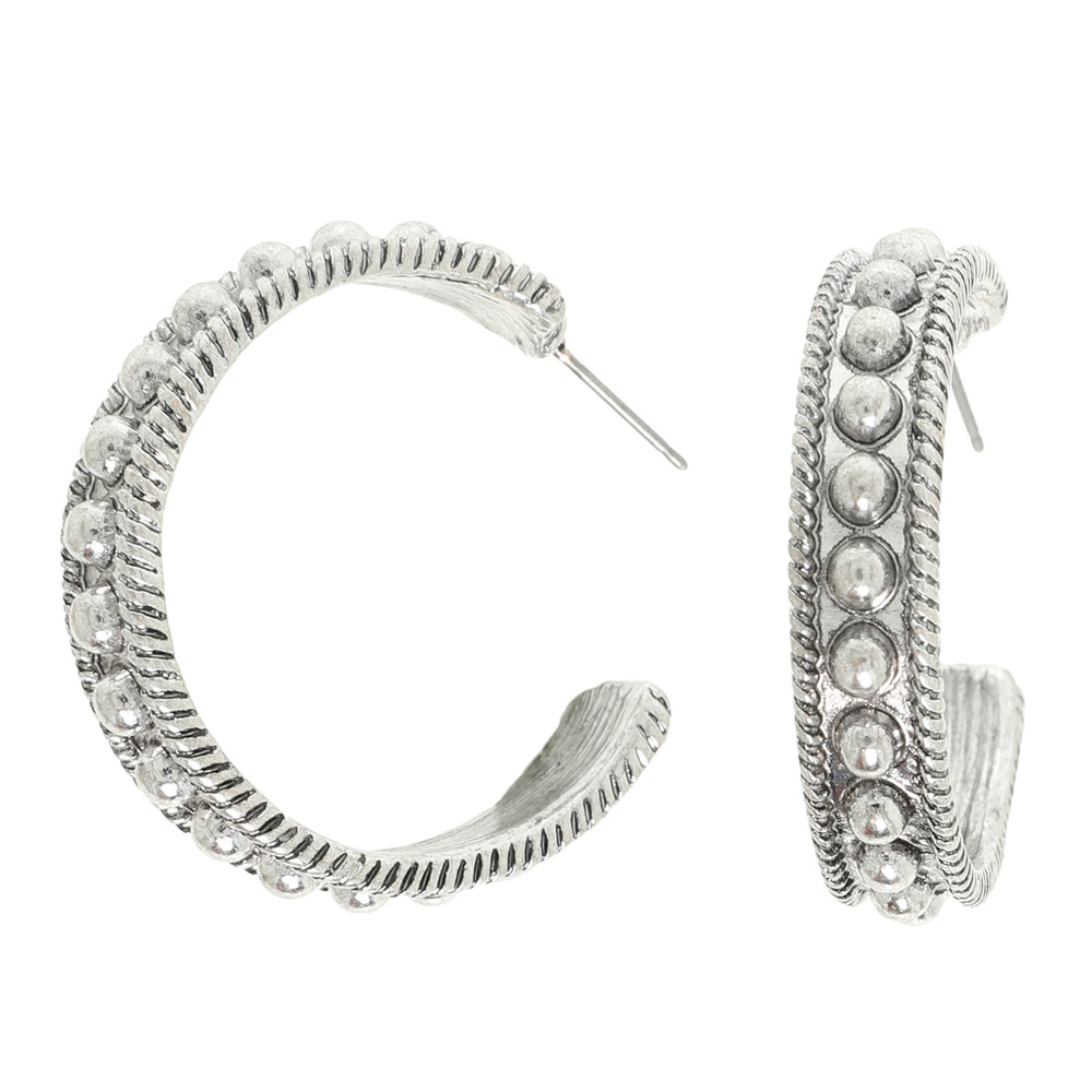 WESTERN DOME RIDGED HOOP EARRINGS IN OXIDIZED SILVER-TONE METAL