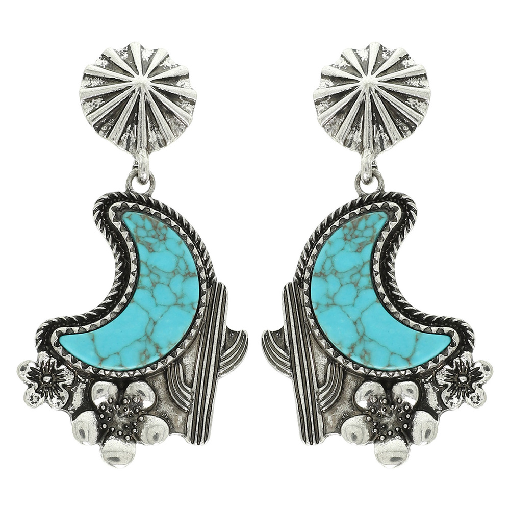 WESTERN TURQUOISE SQUASH BLOSSOM CRESCENT MOON EARRINGS